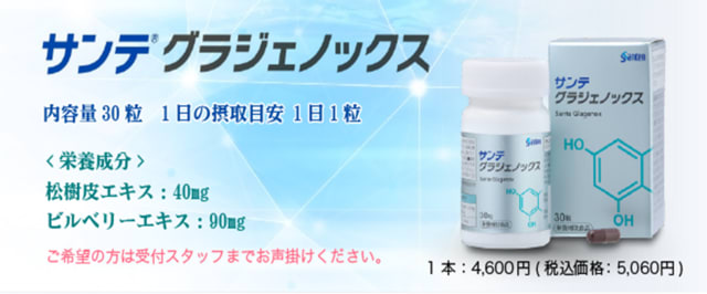 参天製薬から販売されている「緑内障治療サプリメント・グラジェノックス」